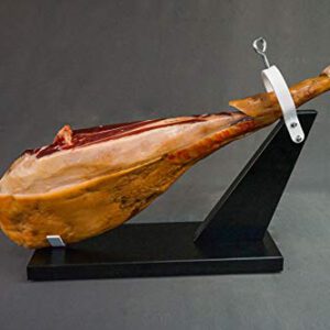 Iberico Ham \”Pata Negra\” Bellota Shoulder Cured for 2 Years, 50% Iberico Breed, 12 Pounds, 20-25 Servings + Ham Holder + Carving Knife Set + Guide