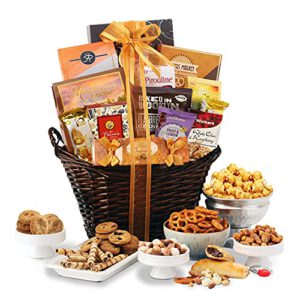 Classic Fresh Fruit Basket Gift with Crackers, Cheese and Nuts for Christmas, Holiday, Birthday, Corporate