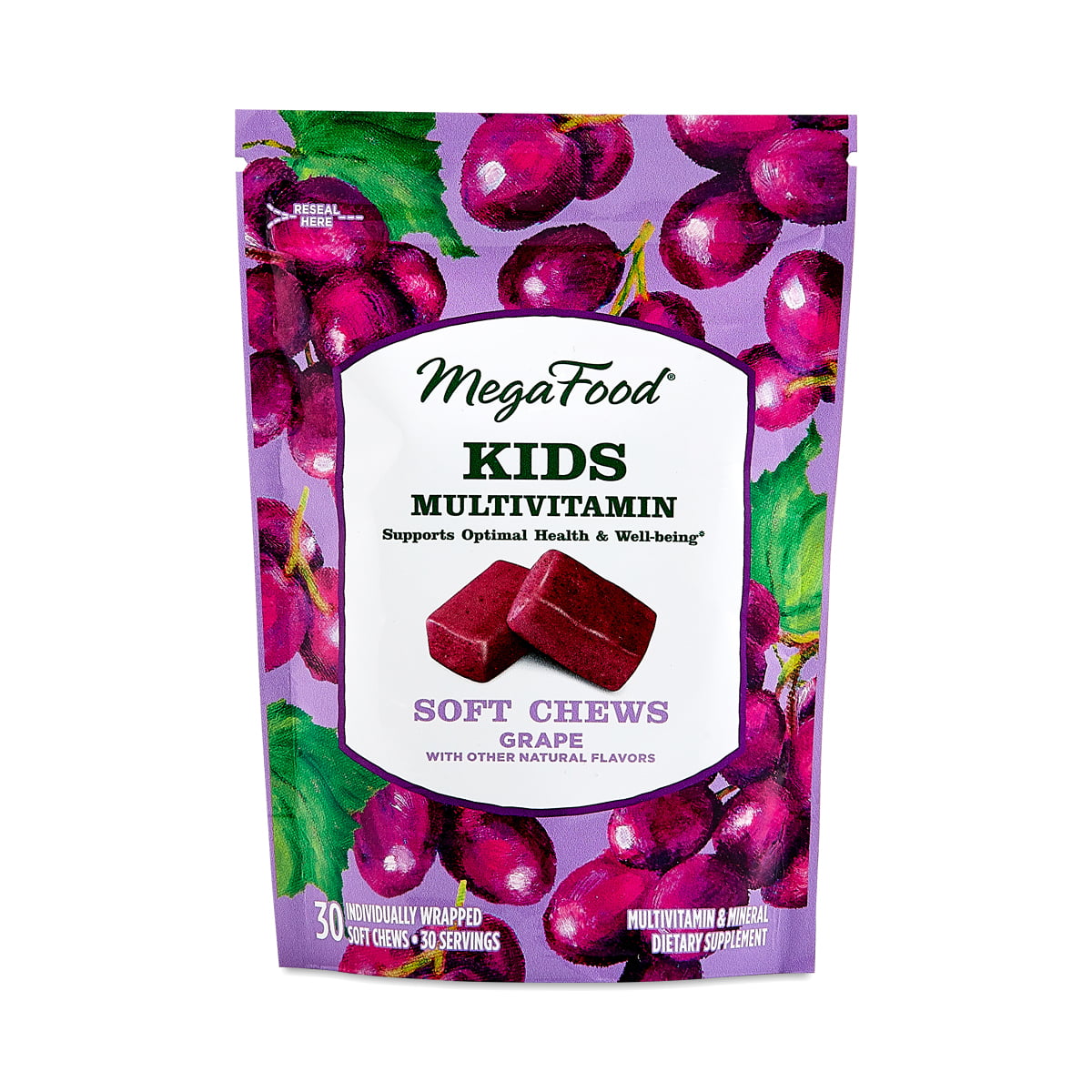 Support your child’s development with Kids One Daily Multivitamin Soft Chews from MegaFood. Every chew includes 5mg of oranges, cranberries, and blueberries, plus vitamins C, E, and beta carotene for added nutrition. The juicy grape flavor makes this supplement easy to take. *These statements have not been evaluated by the Food and Drug Administration. This product is not intended to diagnose, treat, cure, or prevent any disease.
