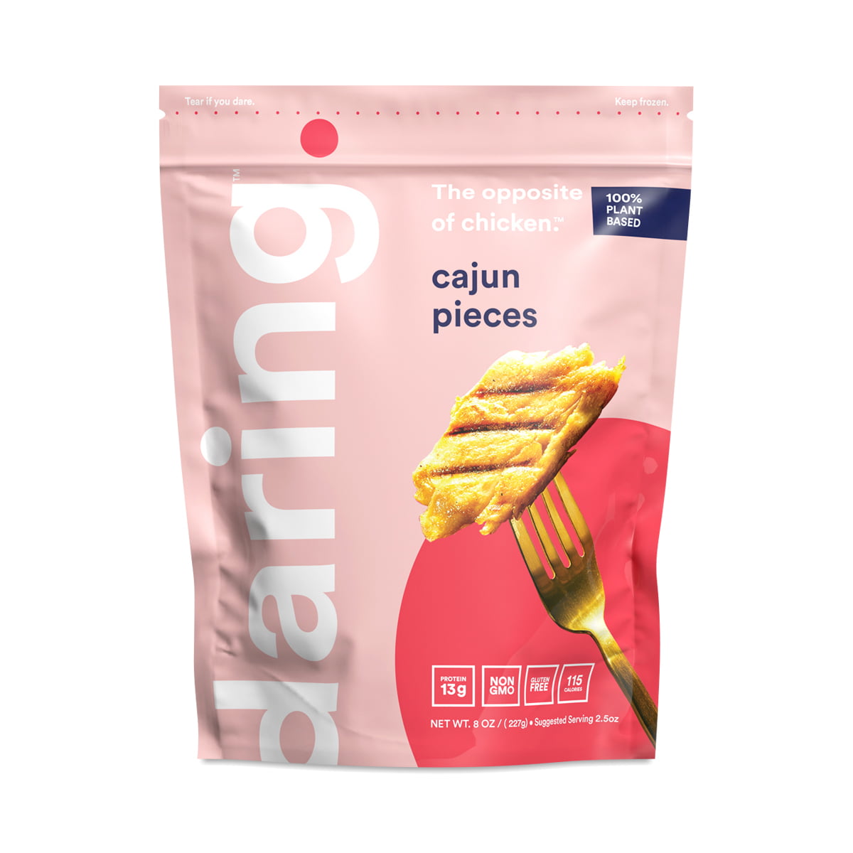 Wake up your tastebuds with Cajun spices. Daring’s Louisiana-inspired chicken is made with soy-based protein, sunflower oil, and a bold spice blend featuring paprika, chili flakes, and cumin.