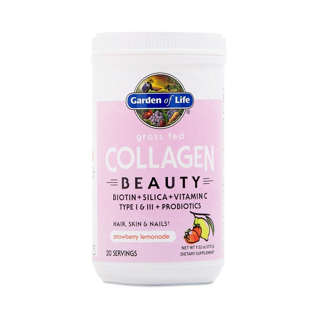 Add a beauty boost to your shakes and smoothies with Garden of Life Grass-Fed Collagen drink in Strawberry Lemonade flavor. Just one scoop of this powder delivers 12 grams of grass-fed bovine collagen peptides, plant-based biotin, silica, vitamin C, and probiotics for beautiful skin, hair and nails, as well as supporting healthy joints.These statements have not been evaluated by the Food and Drug Administration. This product is not intended to diagnose, treat, cure, or prevent any disease.