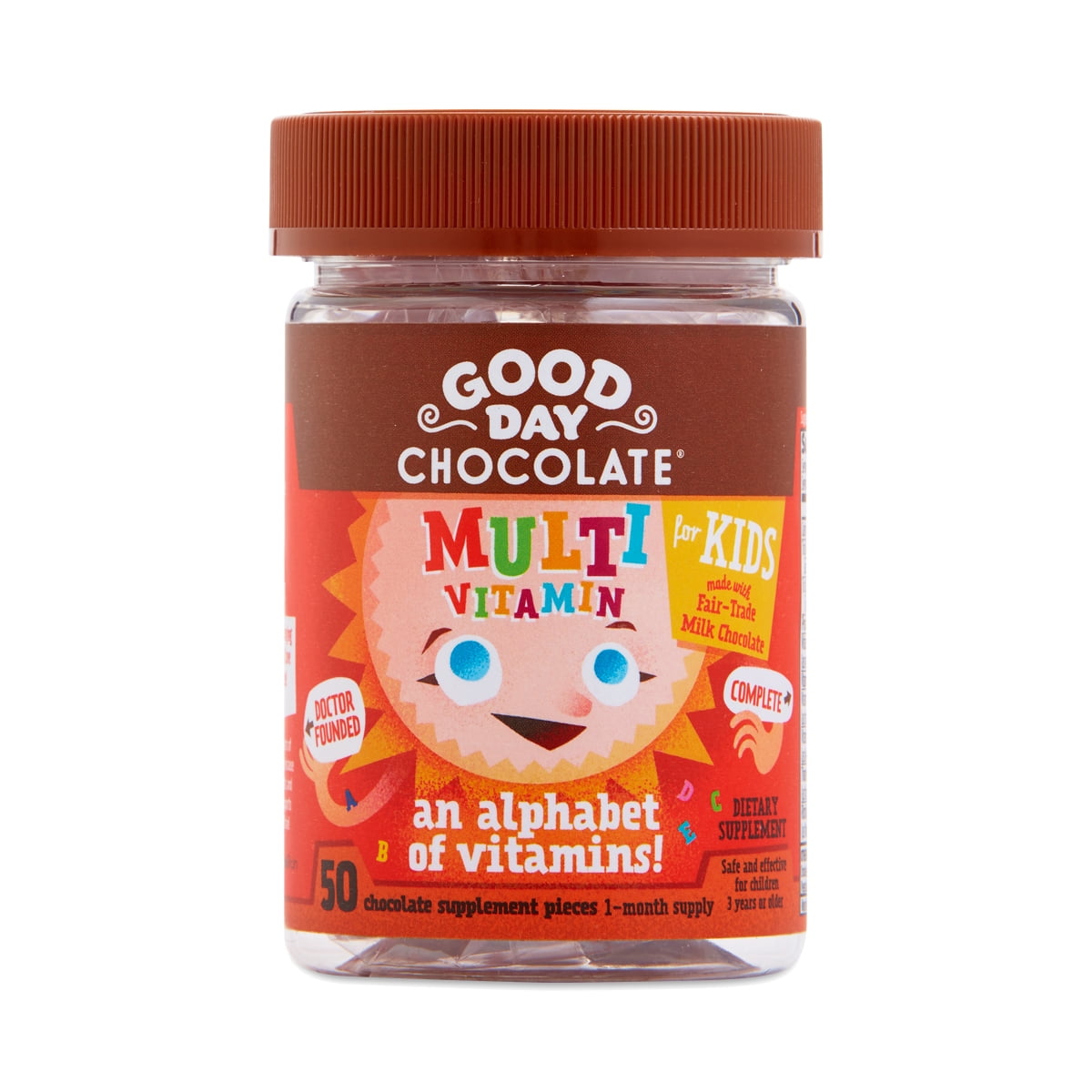 An alphabet of vitamins! A milk chocolate supplement that your kiddos will love AND a complete, daily dose of important vitamins like A, B6, B12, C, D, E, Folate and Biotin!These statements have not been evaluated by the Food and Drug Administration. This product is not intended to diagnose, treat, cure, or prevent any disease.