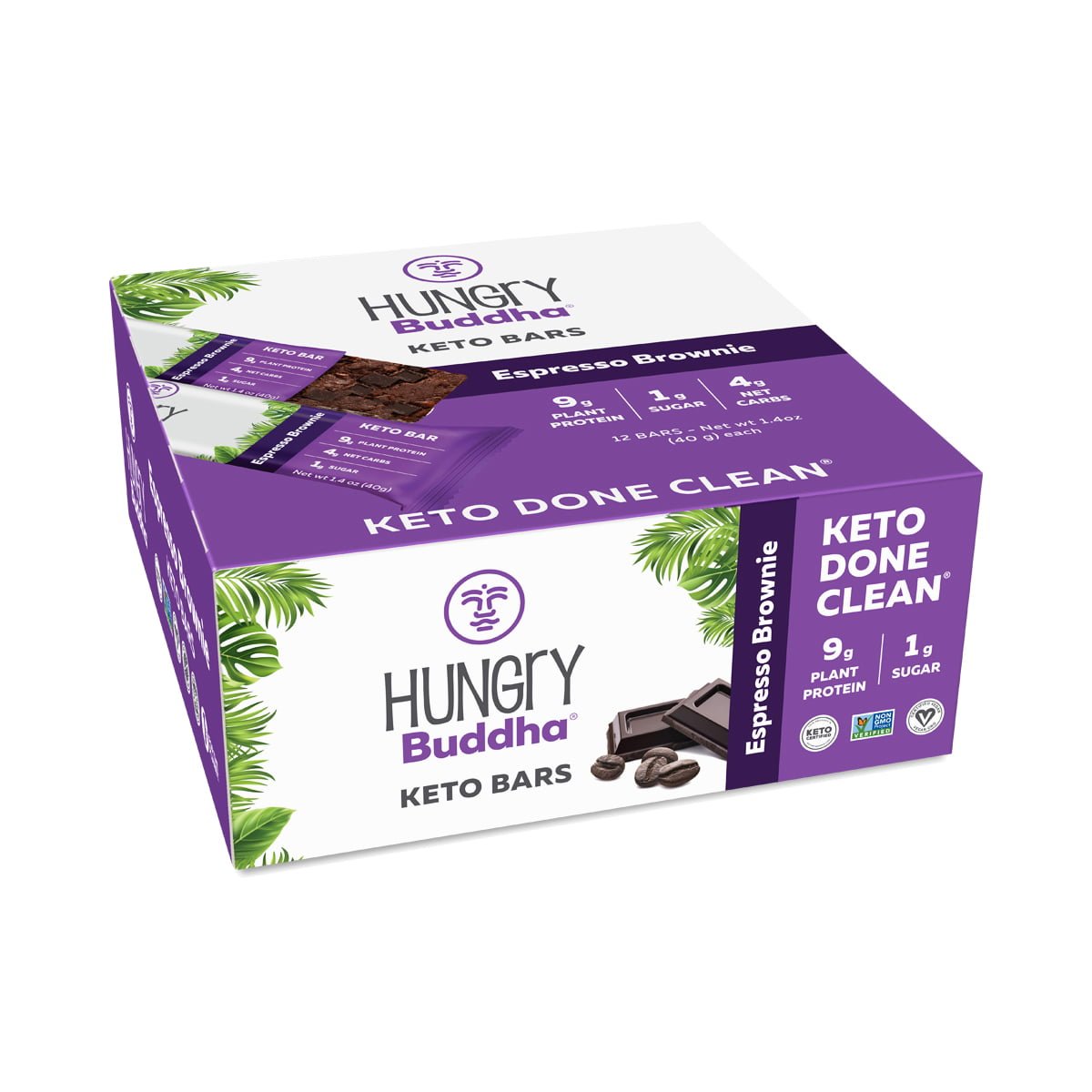 Chocolate lovers will kick their keto heels for Hungry Buddha’s Espresso Brownie bar, which delivers healthy fats from MCT oil and sunflower seed butter, plus 9g of plant-based protein to keep you full.