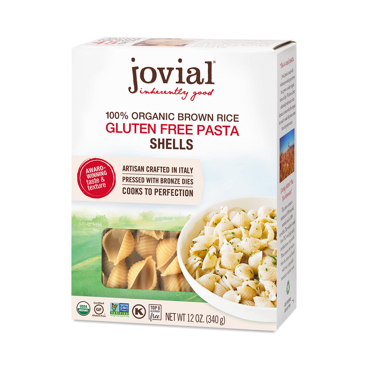 Crafted in Italy using time-honored production methods and carefully selected varieties of rice, Jovial’s brown rice pasta is as close to traditional as gluten free can be. The future of gluten free is delicious, wholesome, and completely satisfying food. Cooks firm and has an enjoyable flavor that tastes great with all types of sauces. Pressed with bronze dies and slow dried for superior quality, the only artisanal gluten free pasta available today.