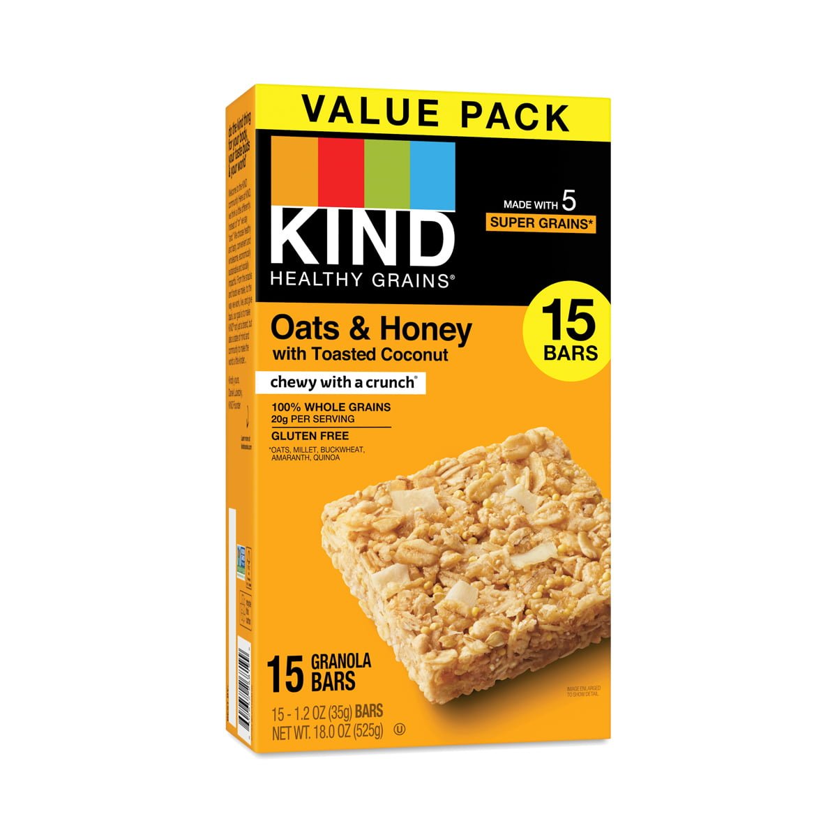 Our own healthy twist on this classic grain bar flavor with 20g of 100% whole grains. Made with 5 super grains including oats, buckwheat, millet, amaranth and quinoa, a touch of honey and the added texture of coconut.