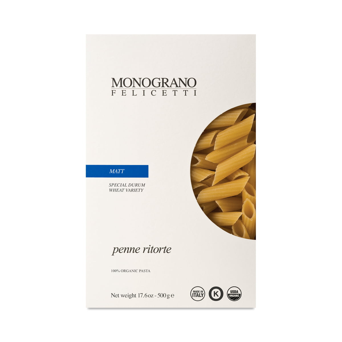 Master artisans crafted this pasta from the matt variety of wheat farmed in the sun-drenched fields of Apulia, in southern Italy. Subtle ridges makes it easy for penne ritorte to soak up sauces. This family-friendly pantry staple is ready for easy weeknight dinners.