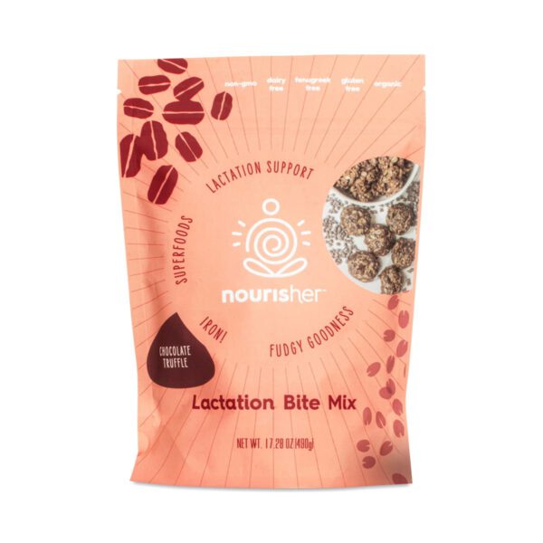 Organic, cookie-like bites support breast milk production with six powerful ingredients: moringa, shatavari, rolled oats, black sesame seeds, brewer’s yeast, and flax. Use this mix to make fudgey baked treats in just three steps.