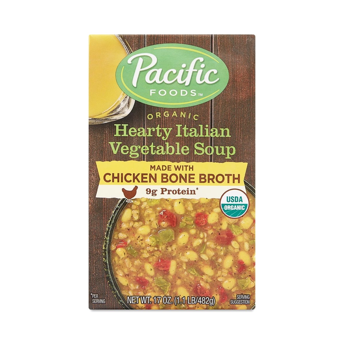 Soups on! Pacific Foods Organic Italian Vegetable Soup With Chicken Bone Broth delivers a nourishing meal that starts with a base of slowly simmered chicken bone broth using only free-range meat and contains Italian seasonings, organic vegetables, and brown rice. With 9 grams of protein and 5 grams of fiber for a hearty meal.