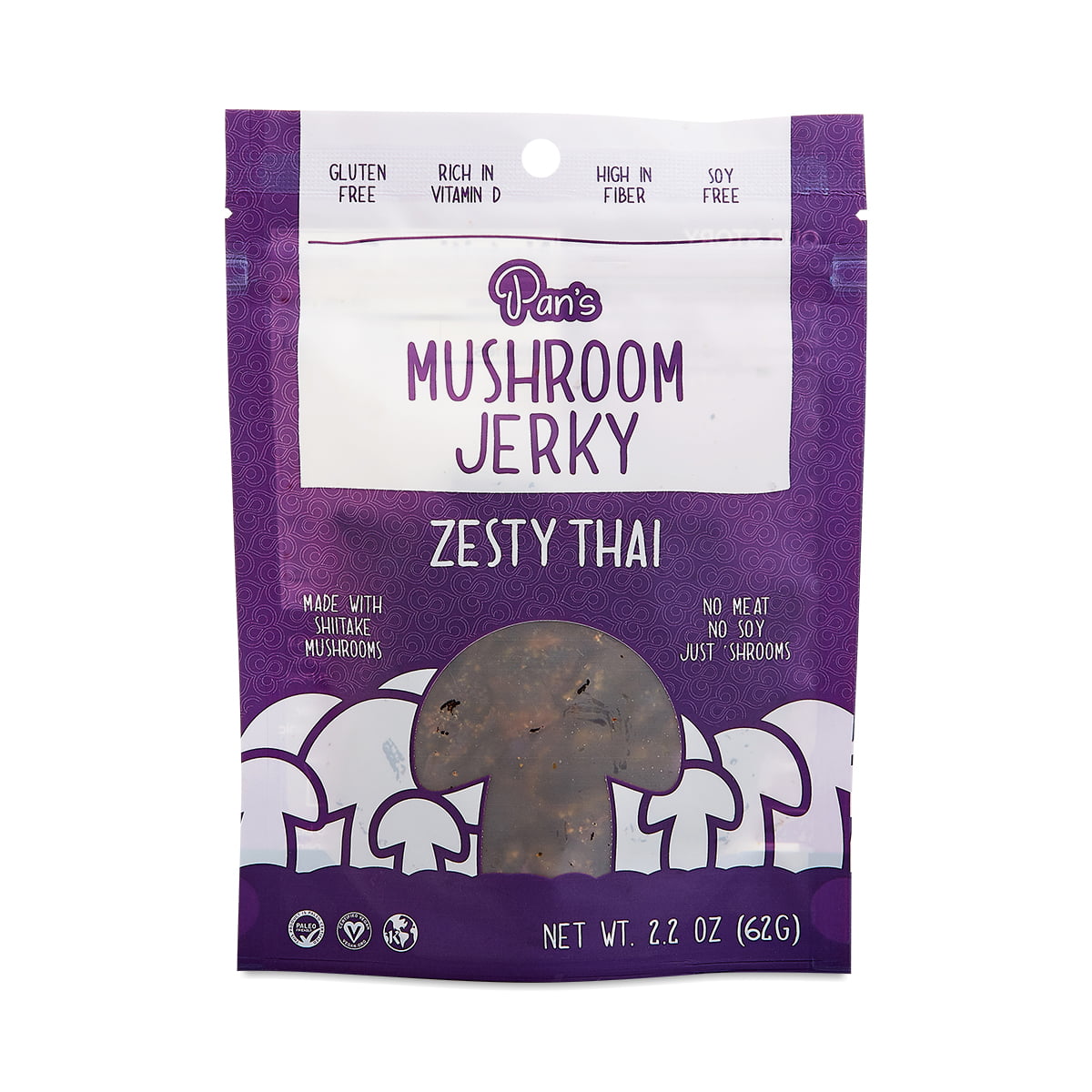 Made with shiitake mushrooms, Pan’s Zesty Thai is their most popular flavor yet. A savory taste with a little kick, their Zesty Thai Mushroom Jerky is vegan, gluten-free, paleo friendly, and uses organic ingredients.