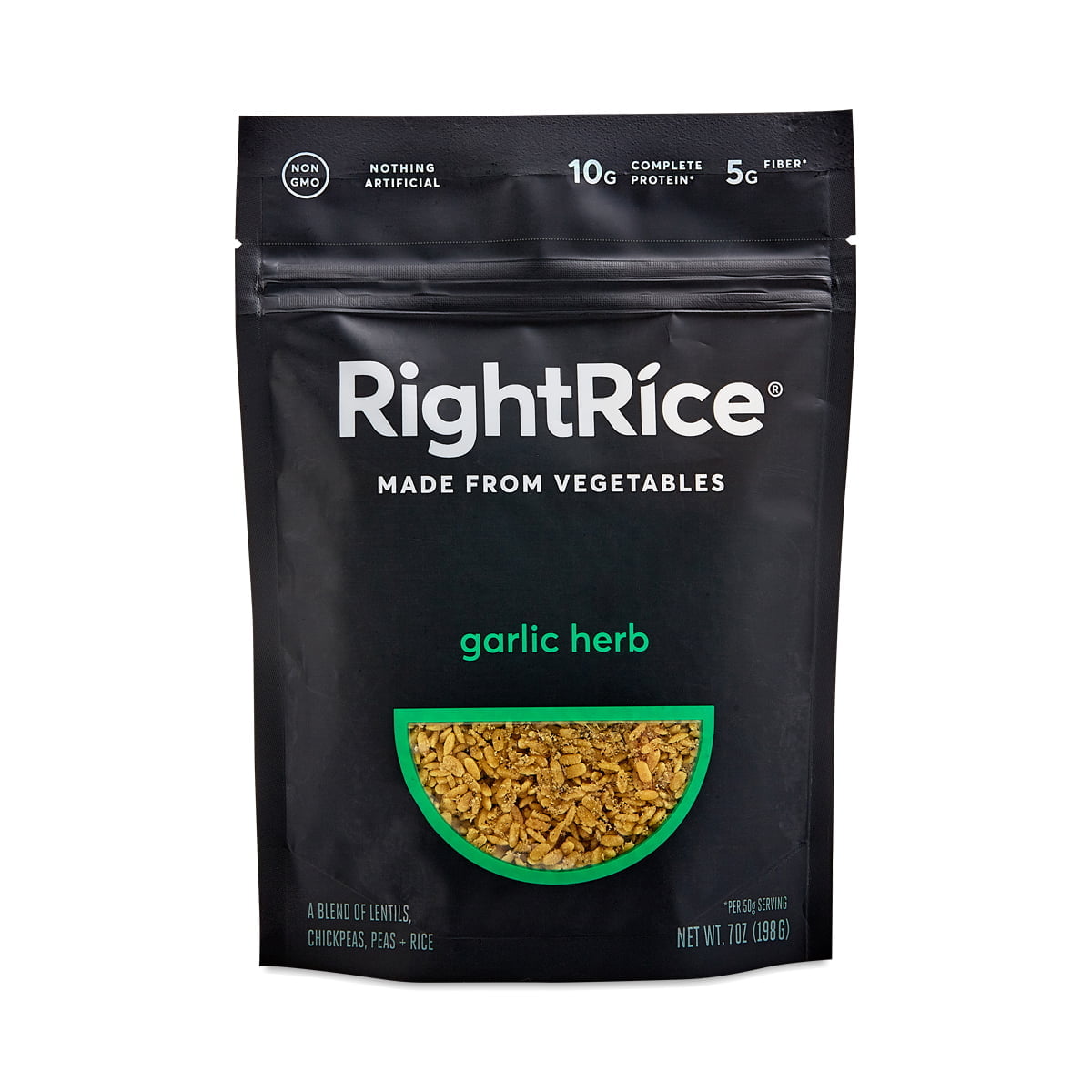 RightRice is a blend of 90% nutritious vegetables (lentils, chickpeas, green peas) and rice. Its deliciously packed with protein and is gluten-free, vegan, Non-GMO, and Kosher. Brimming with fresh herb flavor, a side dish of Garlic Herb RightRice will round out any meal!