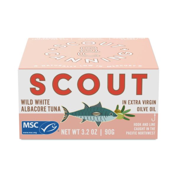 Scout Wild White Albacore Tuna is MSC Certified and sourced from responsible fisheries in the Pacific Northwest. Hand-cut and hand-packed, each portion of chunky tuna is preserved in organic olive oil to ensure freshness from sea to shelf.