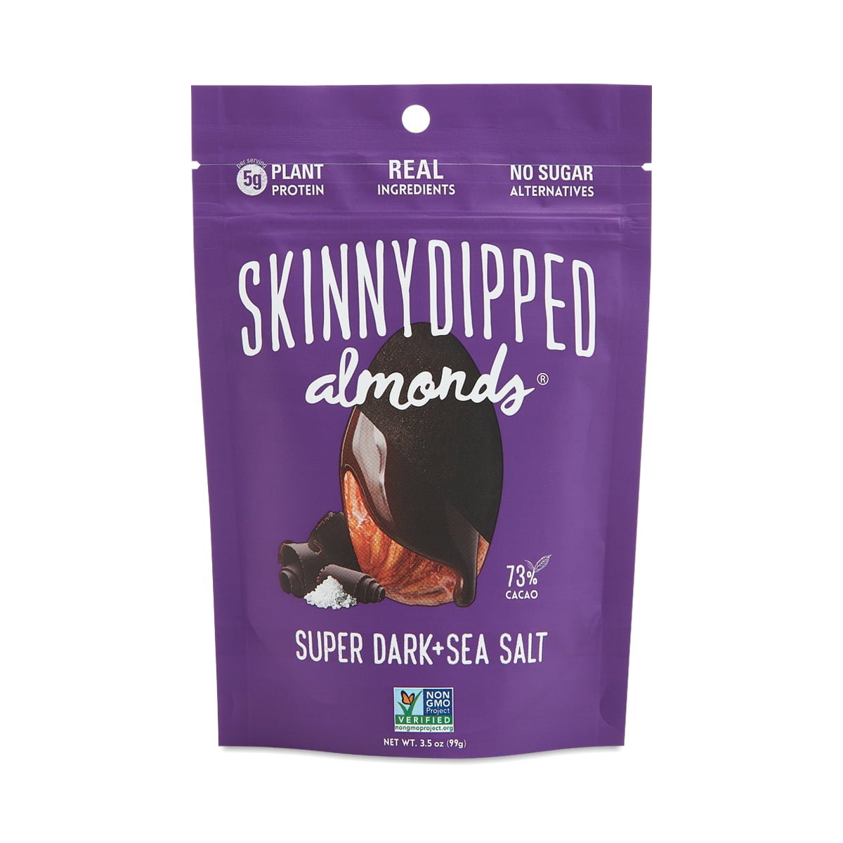 Whole almonds SkinnyDipped in a thin layer of vegan 73% artisan dark chocolate and finished with a hint of sea salt. Resealable bags that are the perfect size for sharing!