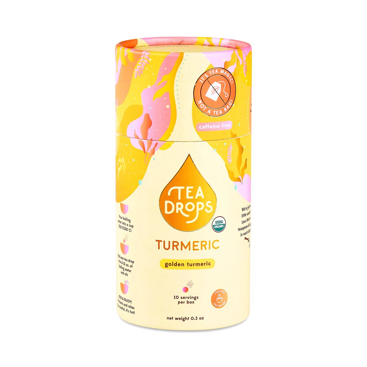 Creamy and light, turmeric tea drops make the base of a rich golden milk for your daily moment of calm. Individual drops come in a recyclable cylinder and biodegradable paper box.
