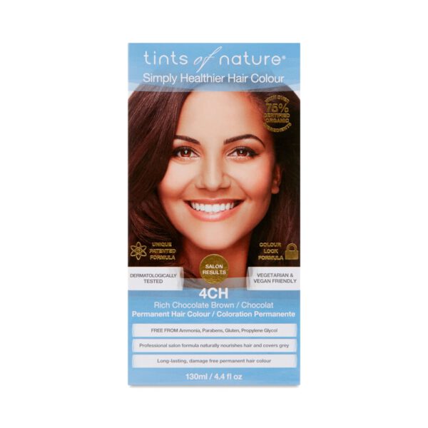 Get the color you desire while taking it easy on your hair with Tints of Nature Permanent Color in Rich Chocolate Brown. The multi-tonal brunette hue offers 100% grey coverage with 75% certified organic and 95% naturally derived ingredients. Theres no ammonia, resorcinol, or parabens so your hair will look great and feel beautifully moisturized.