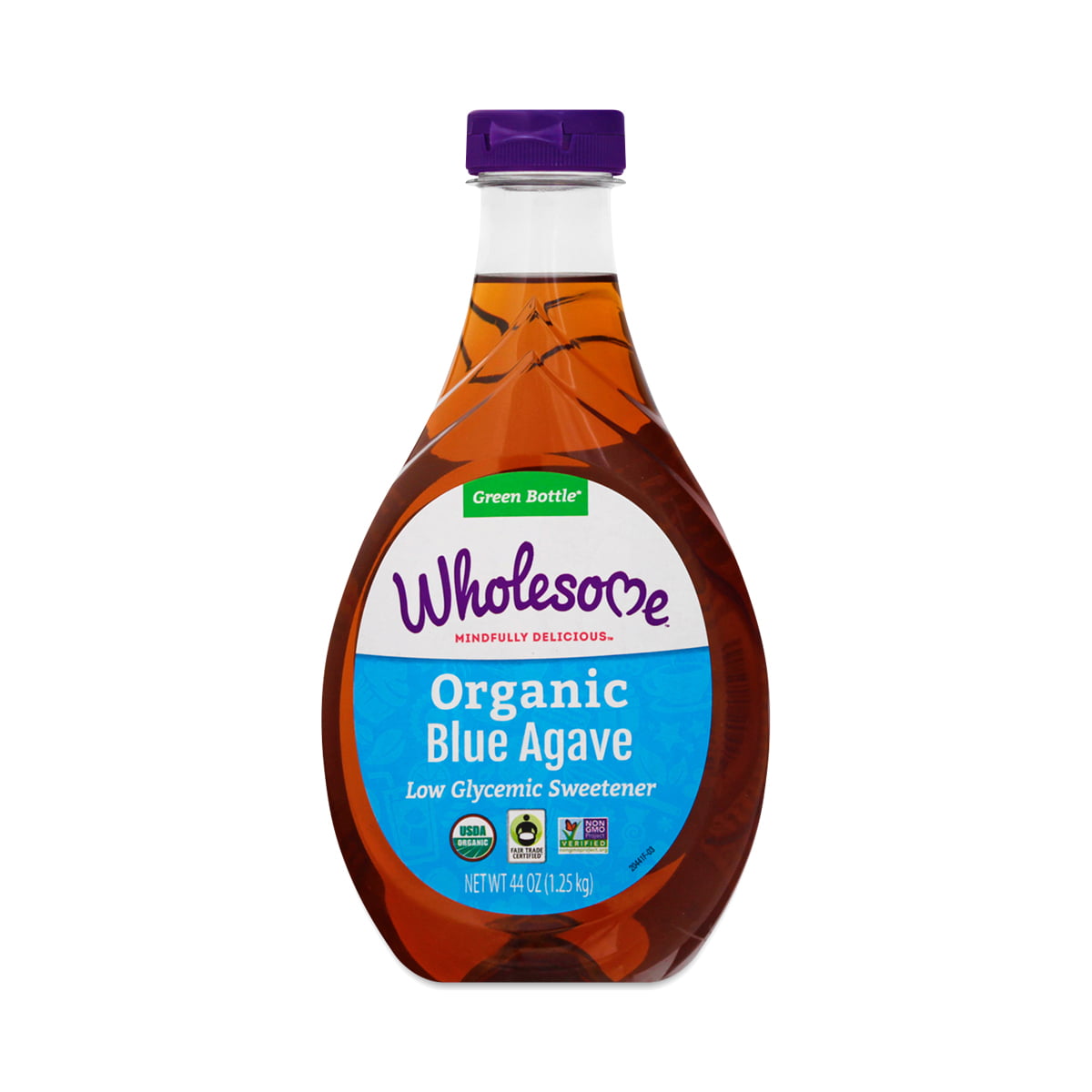 Wholesome Fair Trade Organic Blue Agave is a natural low glycemic sweetener harvested from the core of the Blue Agave plant. Organic Blue Agave is a mild delicious syrup that is ideal for sweetening beverages, oatmeal, pancakes, waffles, yogurt, cereal and more. It is also great in smoothies, iced tea, or cocktails as it dissolves quickly in cold beverages. Agave is easy to bake with as well. Try it wherever you would use a tabletop sugar.