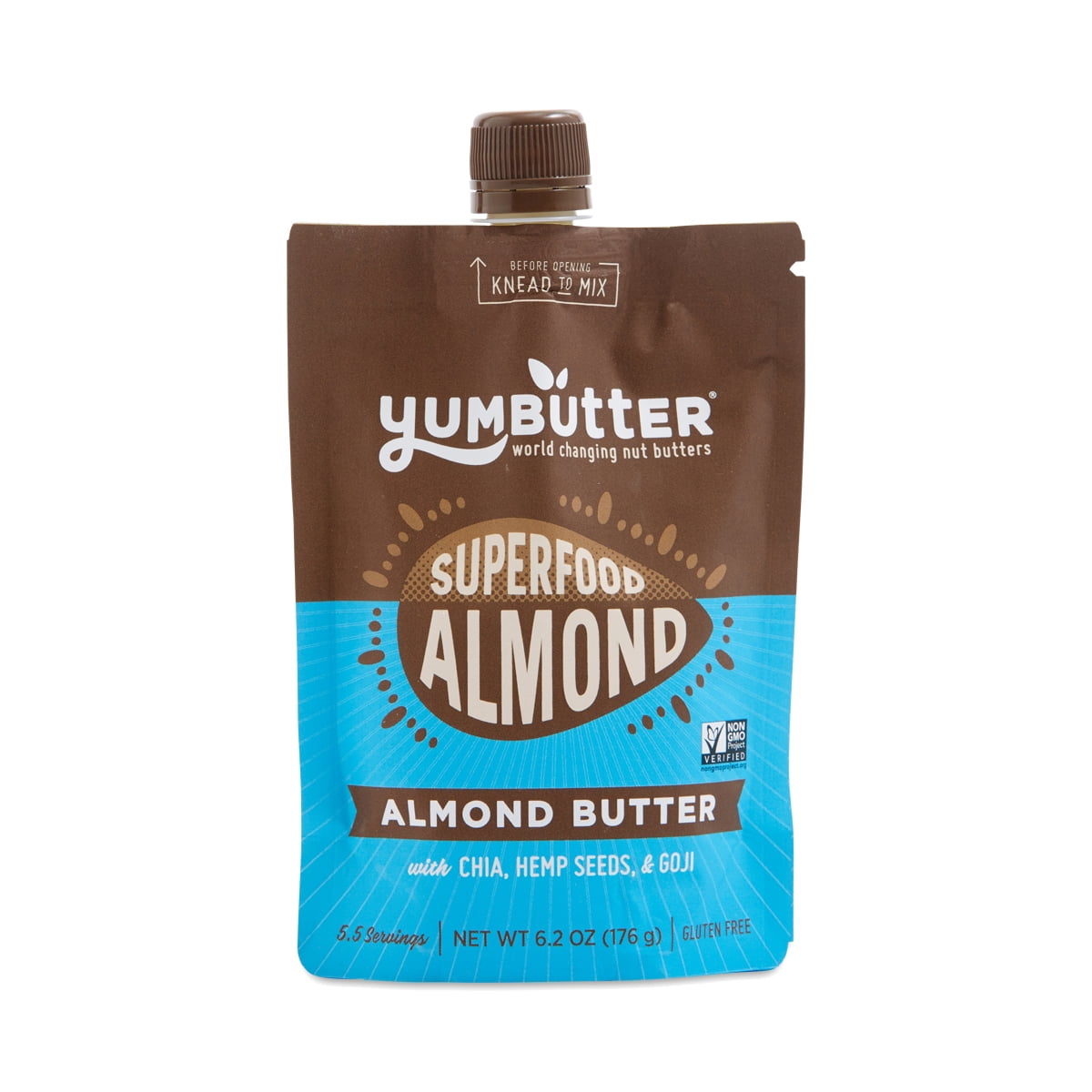 Yumbutter has left no shell unturned in this wholesome almond butter made with extra superfood power. It starts with slow roasted California almonds that are churned homestyle with extra TLC to really bring out their flavor and nutritive power. Goji berries, chia seeds, and hemp hearts are added for 10 grams of protein per serving and more omegas.